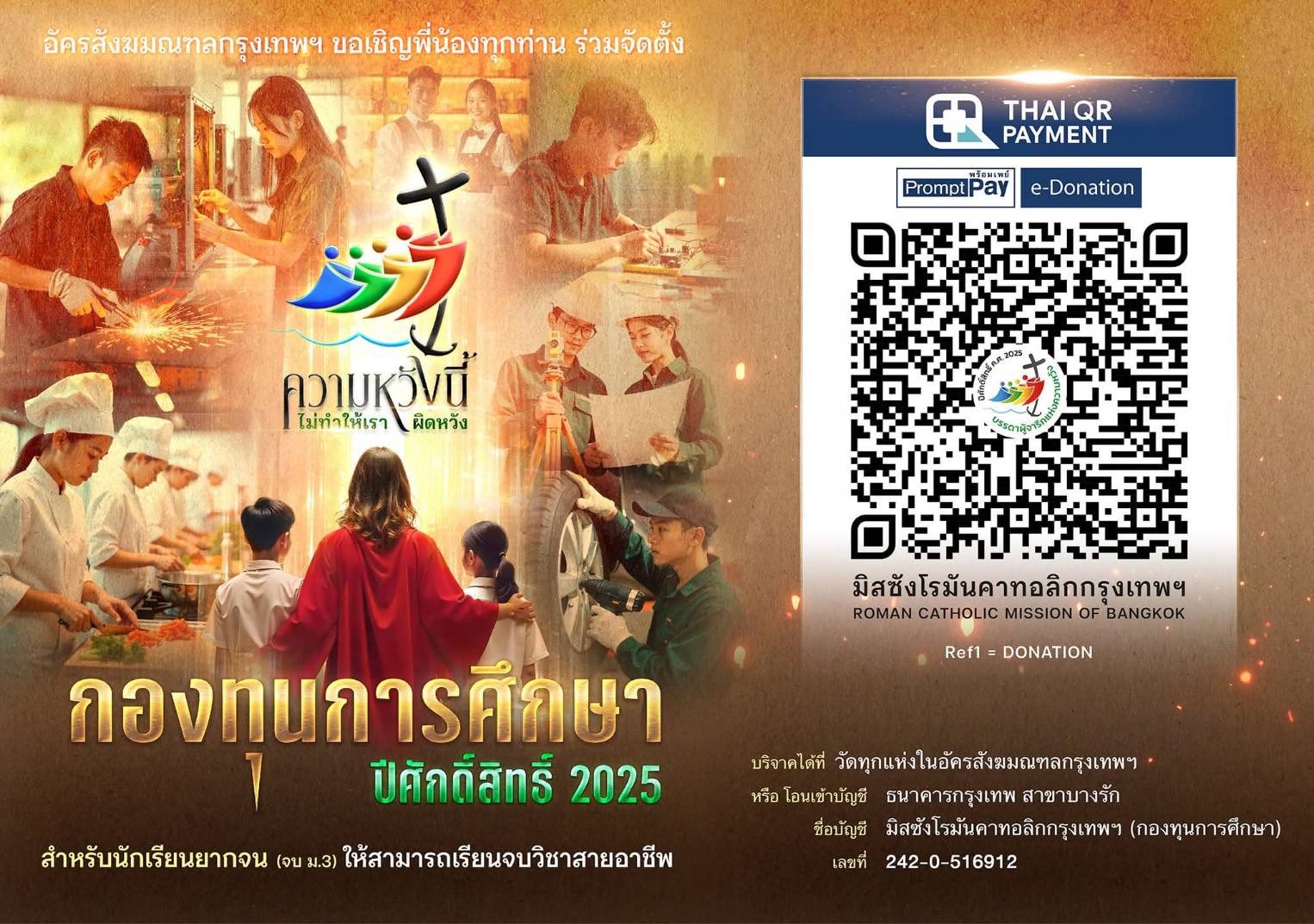 อัครสังฆมณฑลกรุงเทพฯ ขอเชิญพี่น้องทุกท่าน ร่วมจัดตั้ง “กองทุนการศึกษาปีศักดิ์สิทธิ์ 2025”