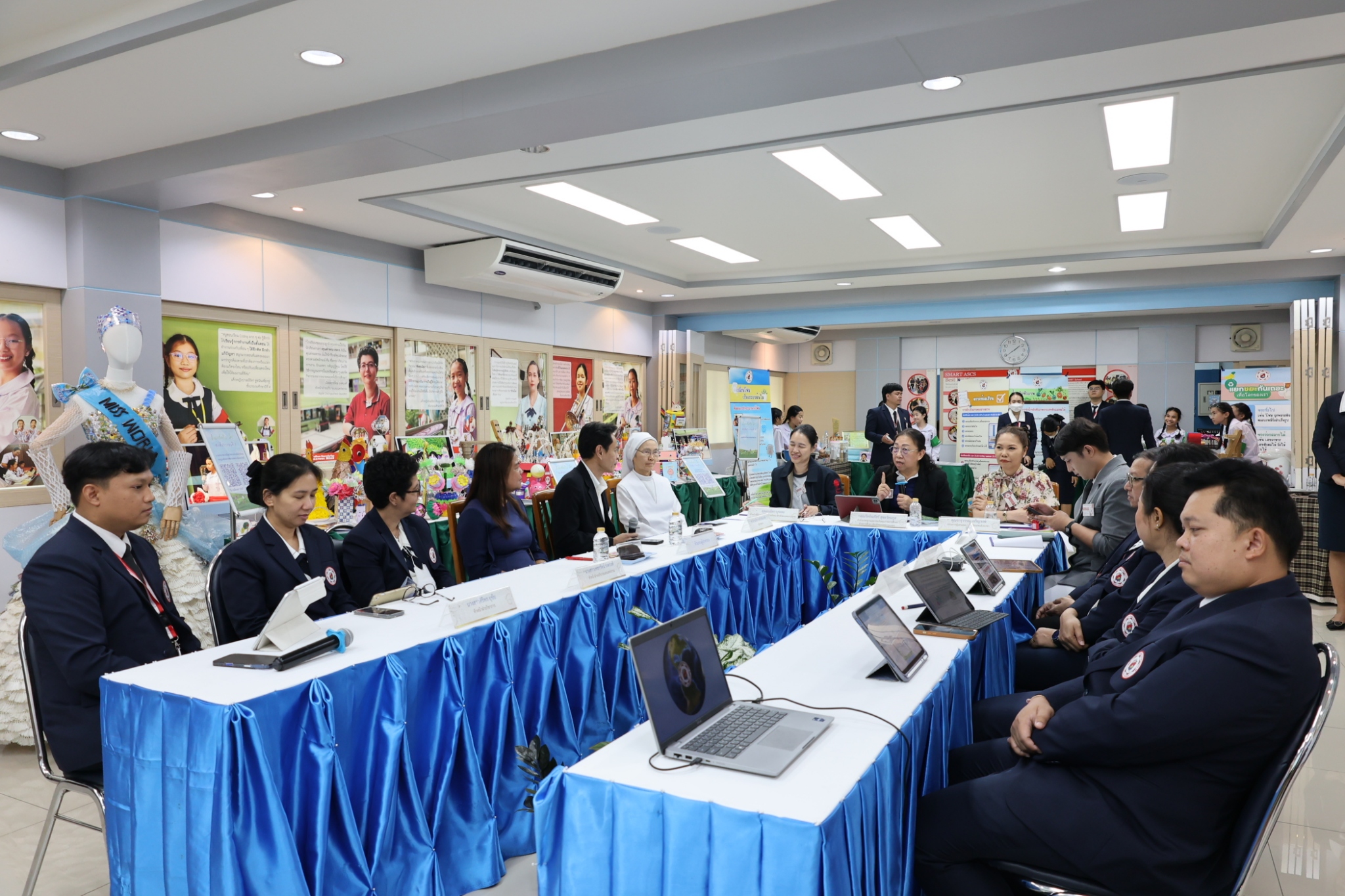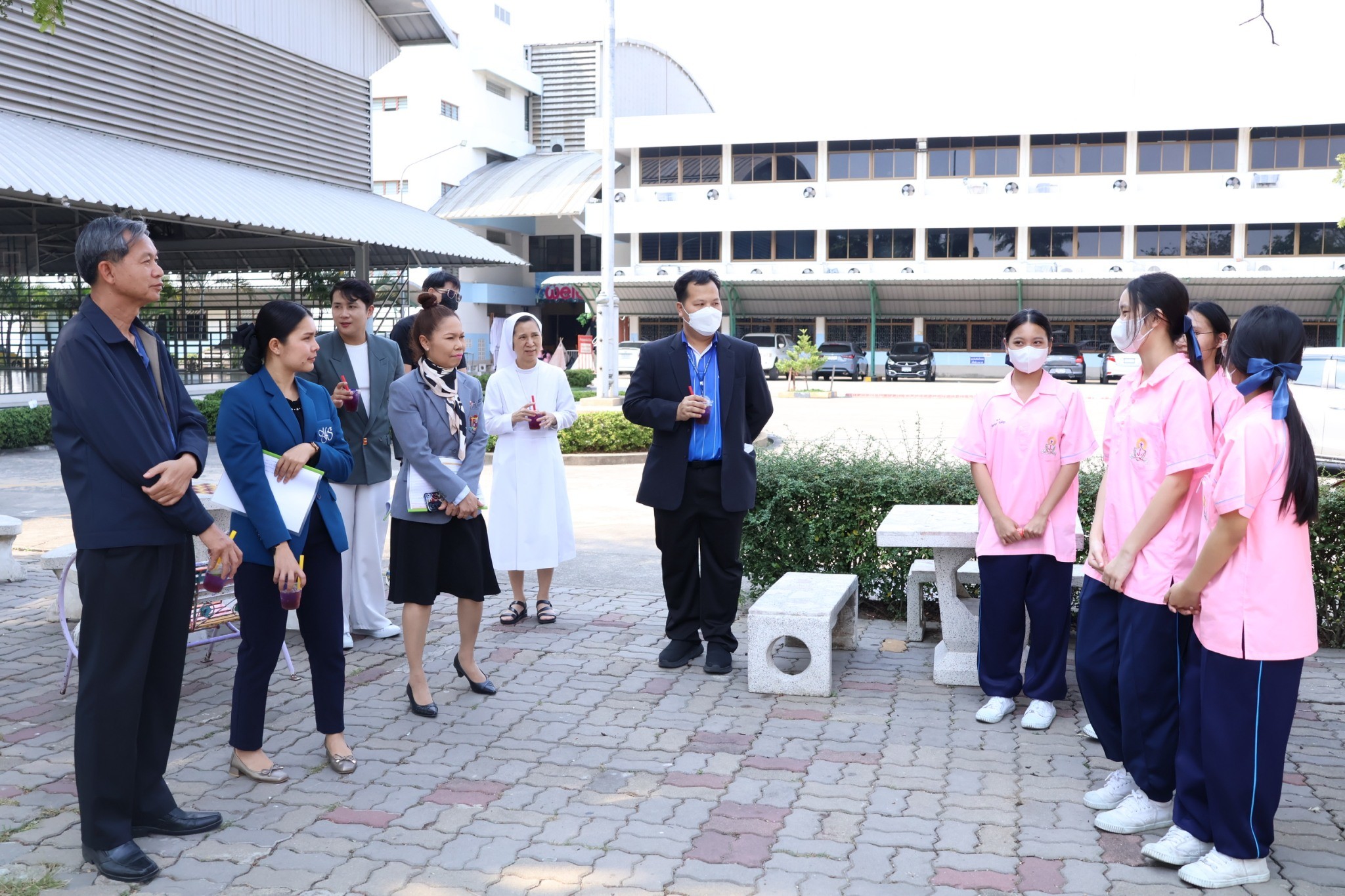 ในการนี้ คณะกรรมการได้รับการต้อนรับจากซิสเตอร์ศิริรัตน์ อนุวัฒน์ประกิจ ผู้อำนวยการโรงเรียน ซิสเตอร์วรรณี ฉัตรสุภางค์ รองอธิการ/ผู้จัดการ คณะครู และนักเรียนของโรงเรียนมารีย์อุปถัมภ์