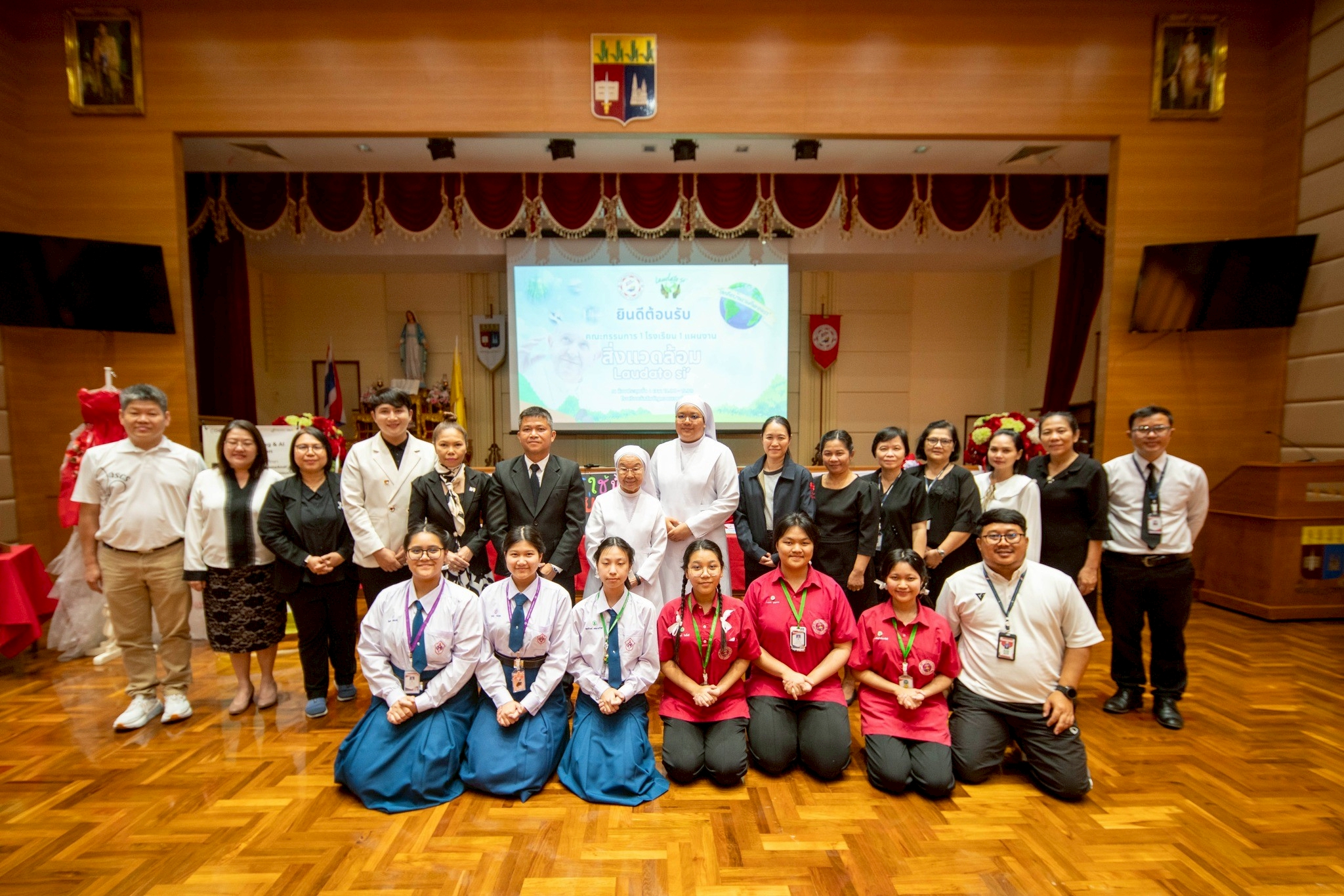 ในการนี้ คณะกรรมการได้รับการต้อนรับจากคุณพ่ออนุศักดิ์ กิจบำรุง รองผู้อำนวยการโรงเรียน คณะครู และนักเรียนของโรงเรียนยอแซฟอุปถัมภ์ แผนกหญิง