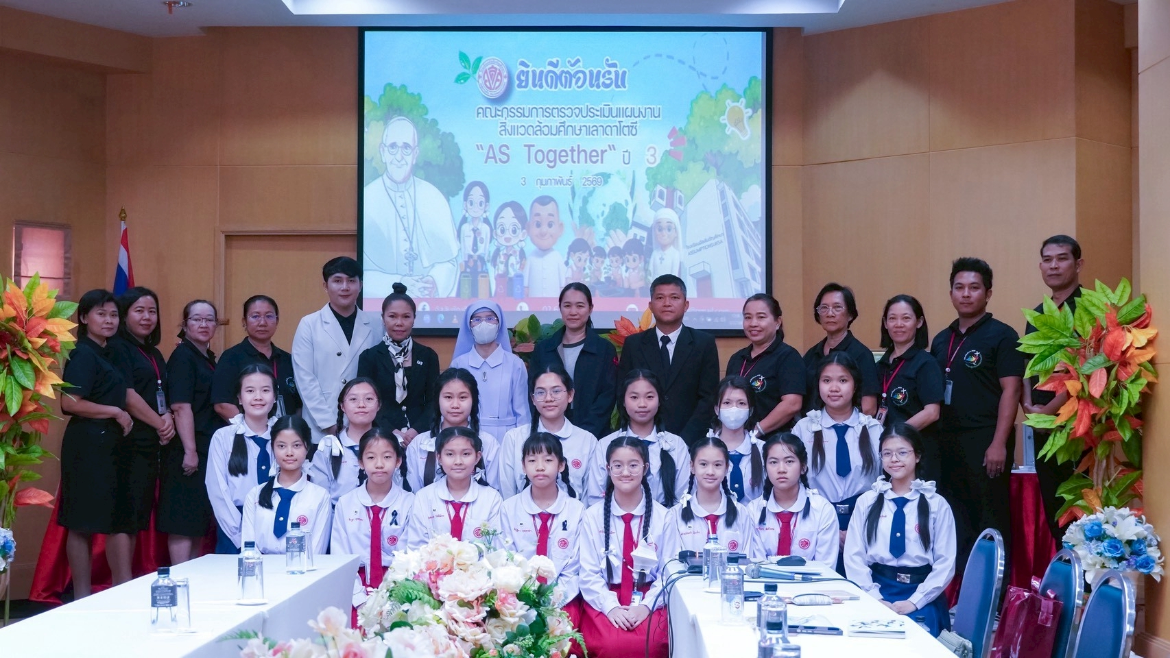 ในการนี้ คณะกรรมการได้รับการต้อนรับจาก ซิสเตอร์ ดร.น้ำทิพย์ งามสุทธา ผู้อำนวยการโรงเรียน คณะครู และนักเรียน