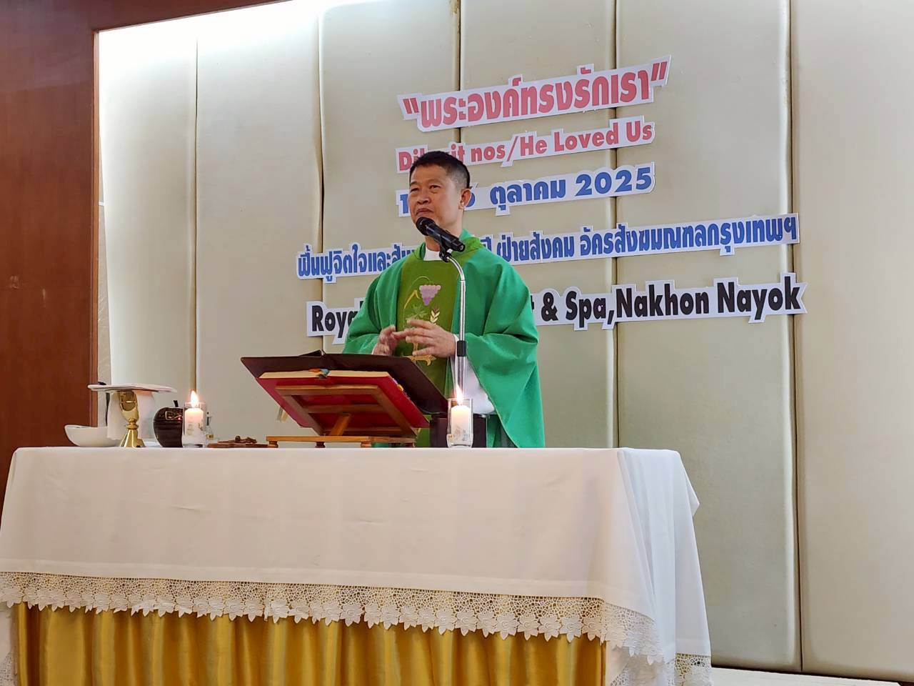 14-16 ตุลาคม 2568 ฝ่ายสังคม อัครสังฆมณฑลกรุงเทพฯ โดยคุณพ่อสราวุธ อมรดิษฐ์ ผู้ช่วยพระสังฆราชฝ่ายสังคม ได้จัดฟื้นฟูจิตใจและสัมมนาบุคลากรประจำปี 2568 ณ โรงแรมรอยัลฮิลล์ จ.นครนายก โดยได้เชิญ คุณพ่อศราวิน พัดศรีเรือง มาเป็นวิทยากรให้การอบรมในหัวข้อ "Dilexit nos / He Loved Us / พระองค์ทรงรักเรา" ซึ่งเป็นสมณสาสน์ ฉบับสุดท้ายของสมเด็จพระสันตะปาปาฟรังซิส มีคุณพ่อ/ซิสเตอร์/ผู้จัดการแผนก/ผู้ดูแลบ้าน-ศูนย์/เจ้าหน้าที่และอาสาสมัครจากแผนกต่างๆ ในฝ่ายสังคม อัครสังฆมณฑลกรุงเทพฯ มาเข้าร่วมสัมมนาจำนวน 32 ท่าน