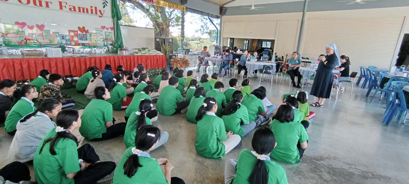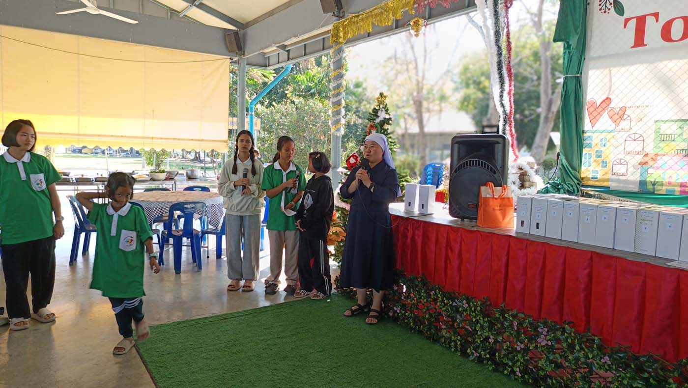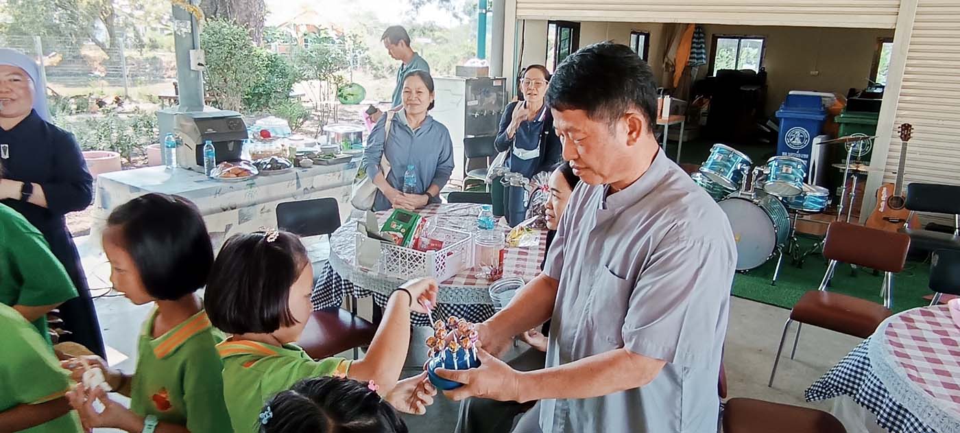 คุณพ่อสราวุธ ได้มอบของขวัญและให้โอวาทกับเด็กๆ หลังจากนั้นเจ้าหน้าที่และเด็กๆ ได้มีร้องเพลง, เล่นเกมส์, แจกขนมและรับประทานอาหารกลางวันร่วมกัน