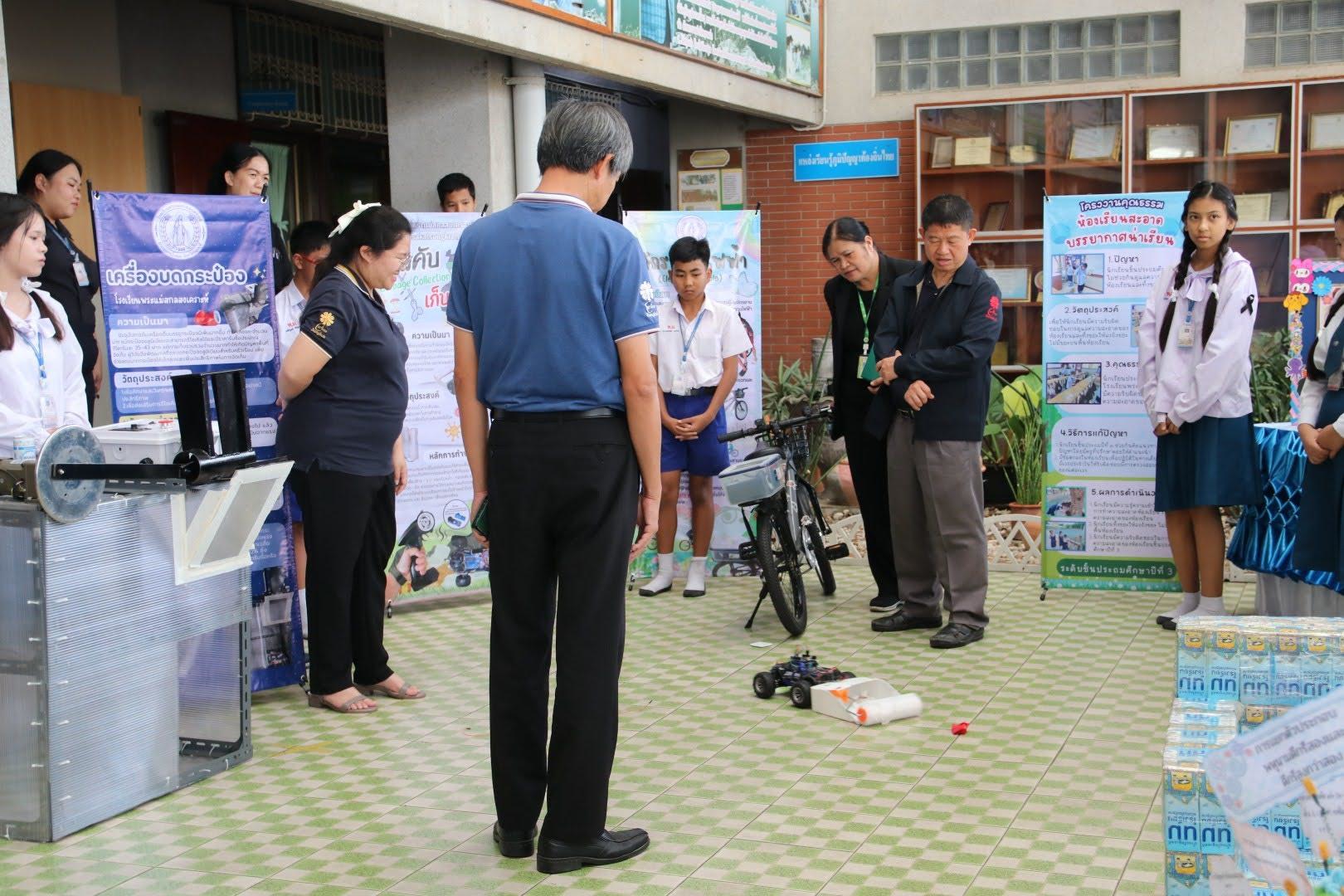 นักเรียนได้นำเสนอผลการดำเนินกิจกรรมตามแผนงานสิ่งแวดล้อมศึกษาตลอดปี พ.ศ. 2565–2568 พร้อมทั้งนำเสนอผลงานสิ่งประดิษฐ์และนวัตกรรมด้านสิ่งแวดล้อม จากนั้นได้พาคณะกรรมการเยี่ยมชมห้องเรียน โรงอาหาร และพื้นที่ต่าง ๆ ภายในโรงเรียน