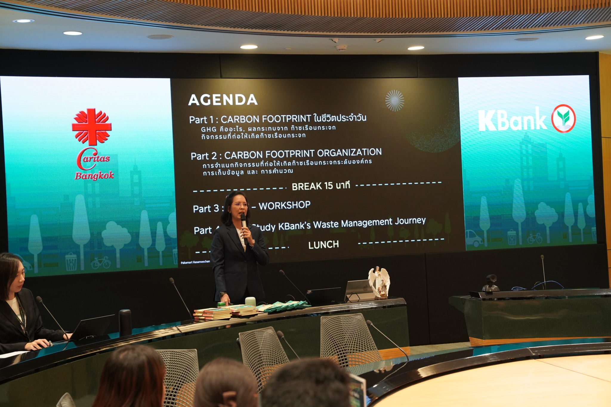 เมื่อวันพุธที่ 13 พฤศจิกายน 2568 ฝ่ายสังคมอัครสังฆมณฑลกรุงเทพฯ ร่วมกับ ธนาคารกสิกรไทย ได้จัดกิจกรรม Carbon Footprint Workshop & กิจกรรมดูงาน “เท–แยก–ทิ้ง” ณ ธนาคารกสิกรไทย สำนักงานราษฎร์บูรณะ โดยมีผู้เข้าร่วมจาก 20 โรงเรียน รวมทั้งสิ้น 65 คน