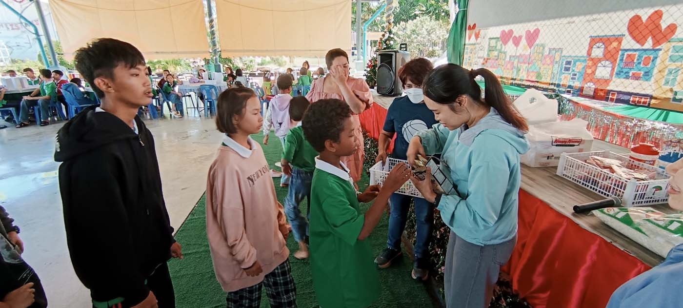 คุณพ่อสราวุธ ได้มอบของขวัญและให้โอวาทกับเด็กๆ หลังจากนั้นเจ้าหน้าที่และเด็กๆ ได้มีร้องเพลง, เล่นเกมส์, แจกขนมและรับประทานอาหารกลางวันร่วมกัน